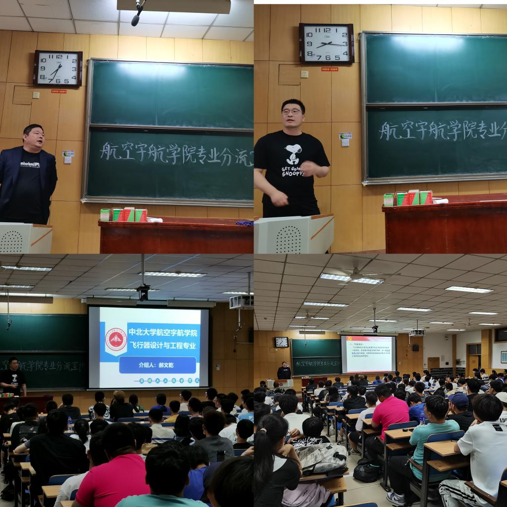 2022级航空航天类本科生在11208教室开展专业分流宣讲会。飞行器设计与工程专业教师郝文亁、飞行器制造工程专业教师赵熹、班主任段雪倩老师出席此次宣讲会。