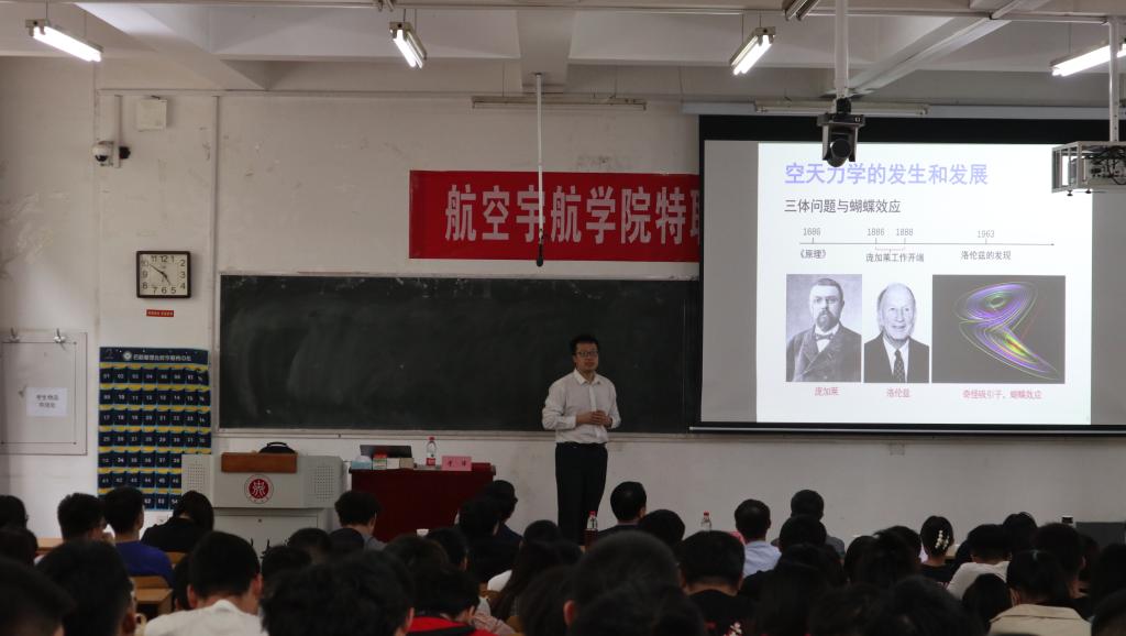 接下来,于洋教授带来《小行星探测——空天力学挑战赛》为主题的华彩报告,他从空天力学的发生发展、小行星与小行星探测任务、小行星研究中的力学问题、小行星探测任务总的力学问题四个方面给在座的同学进行了详细的讲解。于教授在讲座中提到行星研究是多学科融合的领域,他深入浅出地以讲故事的形式让在座师生了解到太阳系小行星发现、观测和探测内容,从空间力学研究的视角展开,窥一斑而知全豹,试图还原小行星研究的前世今生,报告精彩纷呈,在场各位师生们感受颇深,收获颇丰。
