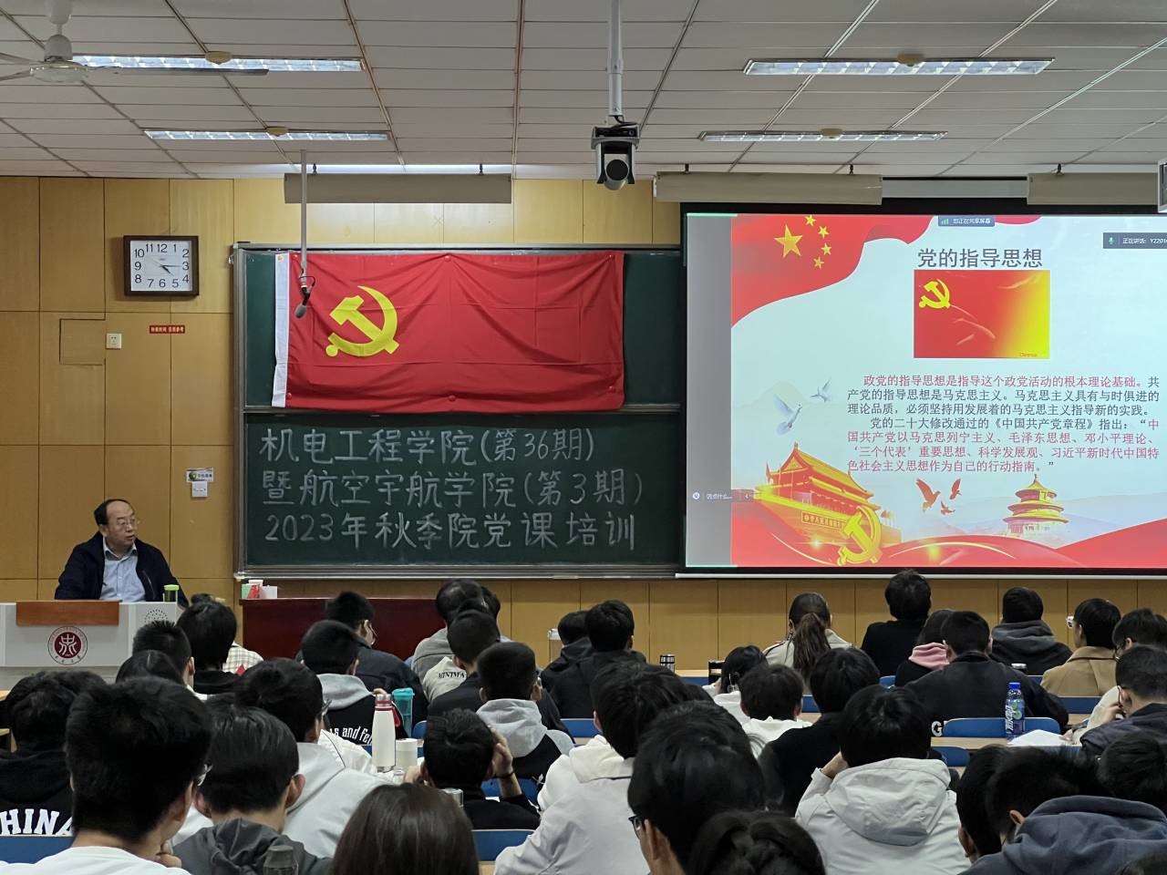 暨机电工程学院在于11208H教室举办了2023年秋季学期入党积极分子培训班,以提高入党积极分子对党的基本理论、基本路线、基本方略的认识,增强党性修养。