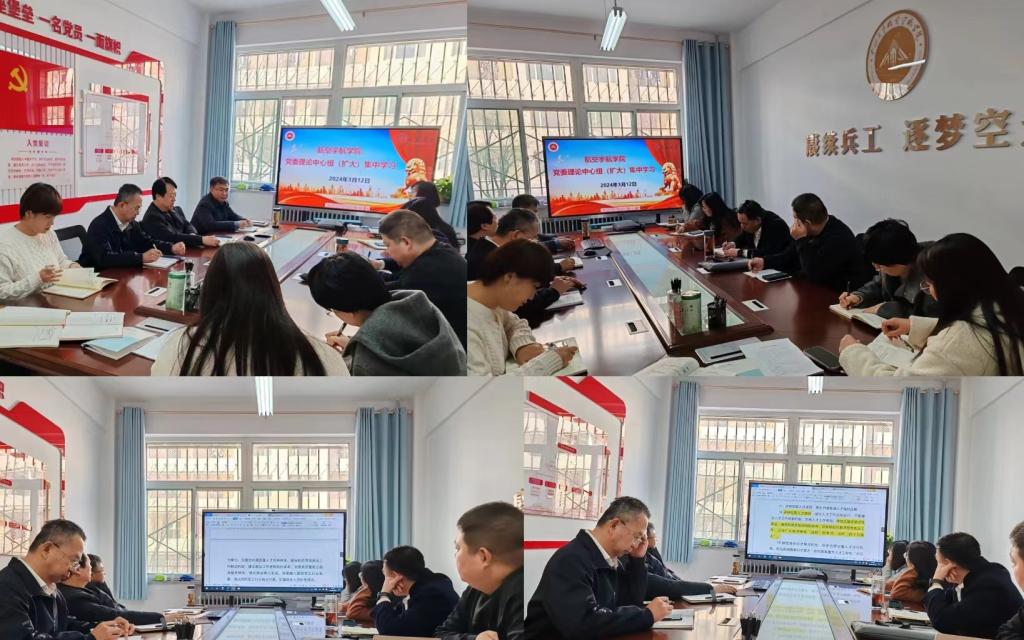 党委理论中心组召开党委委理论学习中心组(扩大)会议,学习全国“两会精神”及近期学校重要文件精神。会议由院党委书记罗建国主持,学院党委成员、学院领导班子、各党支部书记、各科室科长参加了本次会议。