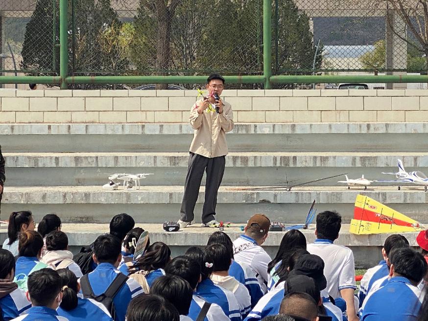 航模协会的学生为进山中学的师生进行了多种类航模飞机展示、讲解及精彩的航模飞行表演,大家欢聚在操场上,共同见证了一场科技梦想的盛宴,从中激发了学生对航空探索的求知欲望和崇尚科学、热爱科学的热情。