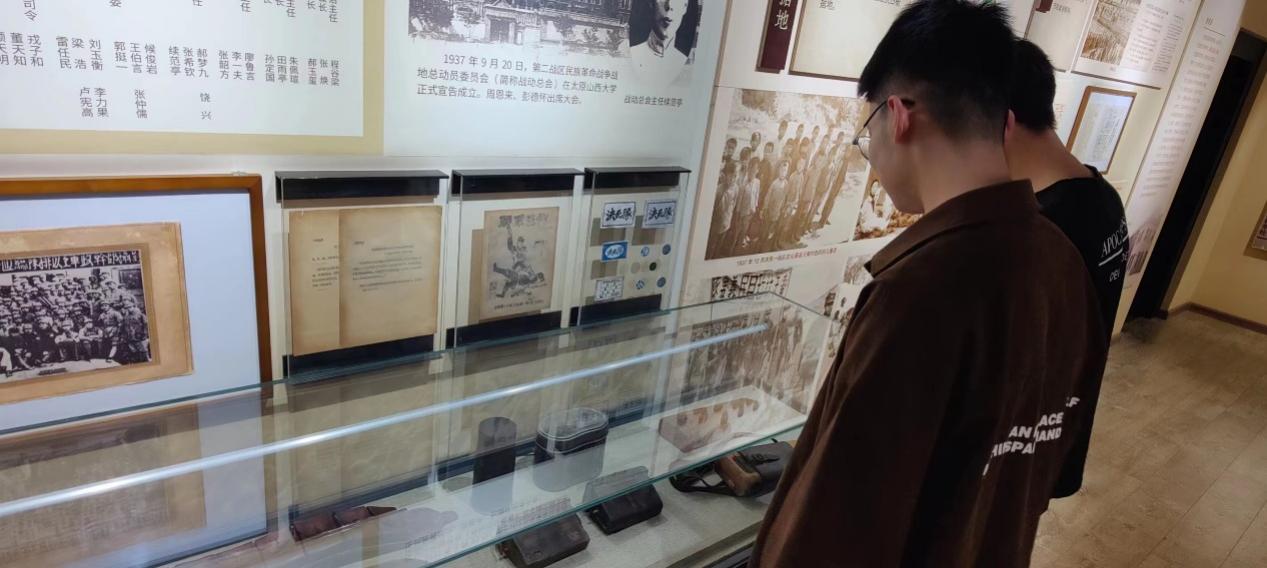 随后,支部到达八路军驻晋办事处旧址,师生们走进展馆,看到了各位先辈的战斗照片,以及缴获日军的手雷、刺刀、钢盔、电台等战争实物,透过这些定格的瞬间和实物,大家对当时的历史有了更为详细、直观的了解。