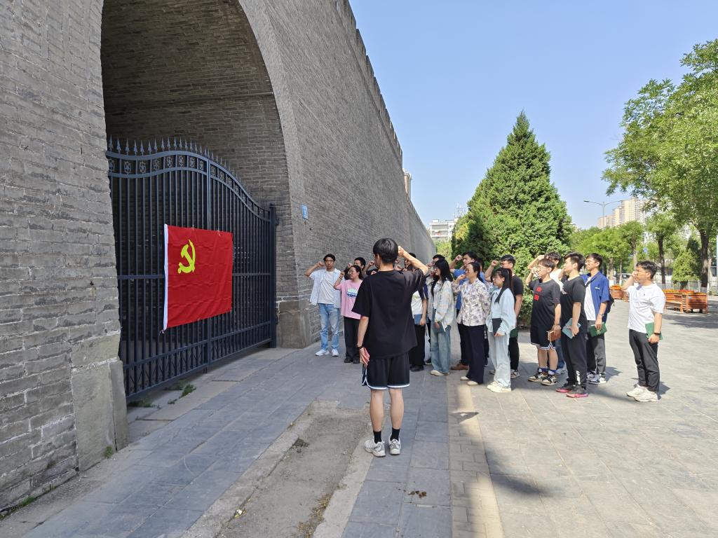 研究生党支部开展了“走革命老路,缅怀革命先烈”主题党日活动,党支部书记韩文艳带领支部全体党员一同参观了牺盟会太原市旧址,拱极门和山西国民师范旧址等地。参观期间各位党员同学积极参与红色地标打卡,并在拱极门下举行了重温入党誓词的宣誓活动。