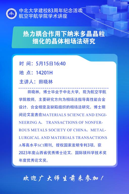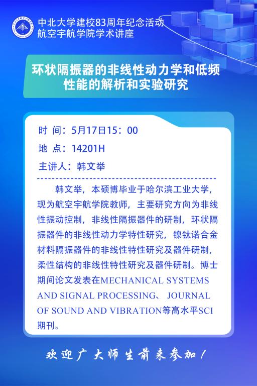 田晓林老师的讲座题目为《热力耦合作用下纳米多晶晶粒细化的晶体相场法研究》,她给同学们就晶体相场基本理论做了简单介绍,讲述了热力耦合作用下的多晶晶粒细化机制。韩文举老师的报告内容主要基于环状结构设计的非线性隔振器研究了其隔振机理和隔振性能。