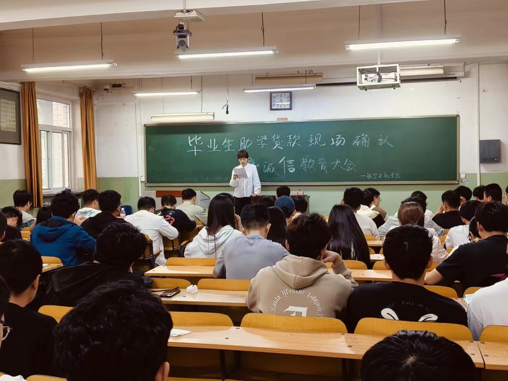 6月5日下午,航空宇航学院于01101H教室举办了2020级开行生源地贷款学生毕业现场确认暨资助诚信主题教育活动,活动由蔚蓝档案