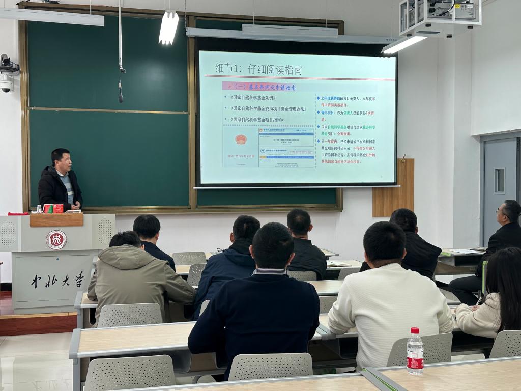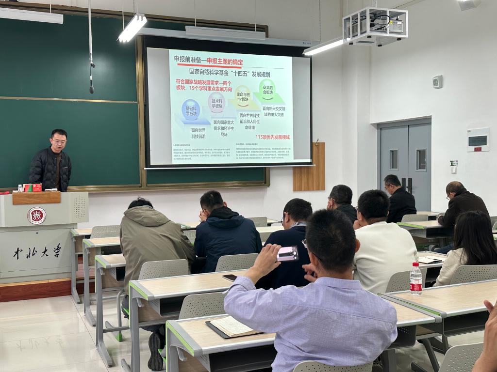 徐鹏首先强调了学院对国家自然科学基金项目申报的重视以及该项目对青年教师成长的重要性,并对2024年学院申报、立项情况以及2025年度学院国基金项目申报的目标任务作了说明。同时,引导各位教师积极关注2024年10月25日国务院常务会议审议通过的《国家自然科学基金条例(修订草案)》。