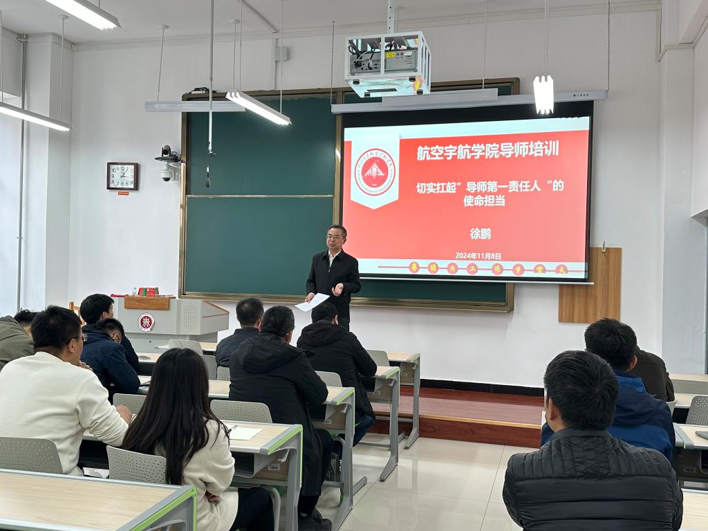 导师培训交流会在18103Z召开,会议由学院副院长徐鹏主持,学院全体研究生导师参会进行学习交流。
