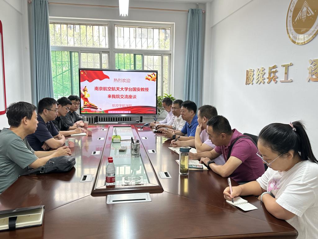 进行学术交流。台国安教授围绕纳智能材料器件,针对硼烯、石墨烯、硫化钼二维原子晶体材料的构筑以及光-力-电探测器件性能调控研究等方向,与学院教师在10号楼108会议室进行了学术交流座谈。学院领导罗建国、徐鹏、史瑞根及系主任、副主任等老师参加座谈,罗建国书记对学院学科方向和人才情况进行了介绍,徐鹏副院长针对学院学术团队研究成果、青年人才培养等作了汇报,台国安教授针对航空学院发展状况、课题组研究领域及人才培养进行了交流。座谈会上,参会教师针对学科交叉、纳米力学研究及青年人才培养等方面积极探讨交流,彼此获益良多。
