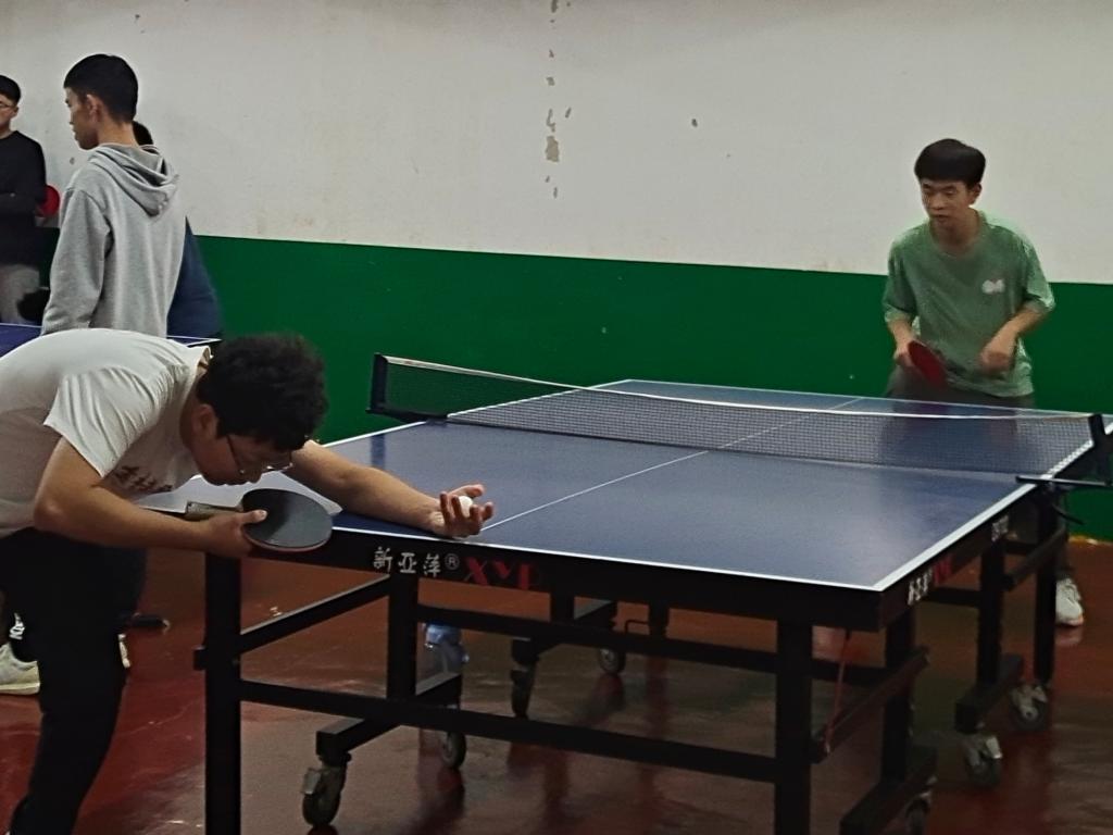 寒风凛冽,旋转起身扬起尘。4日下午,裁判员先于线上组织每班队长进行抽签:504-542,503-541,501-505,502轮空。5日下午三点,每个队伍进行了热身,之后裁判员召集了每队队长并仔细讲解了规则,随后裁判员将三组比赛队伍分别安排在三个乒乓台。准备工作做好后,激烈的比赛正式开始!
