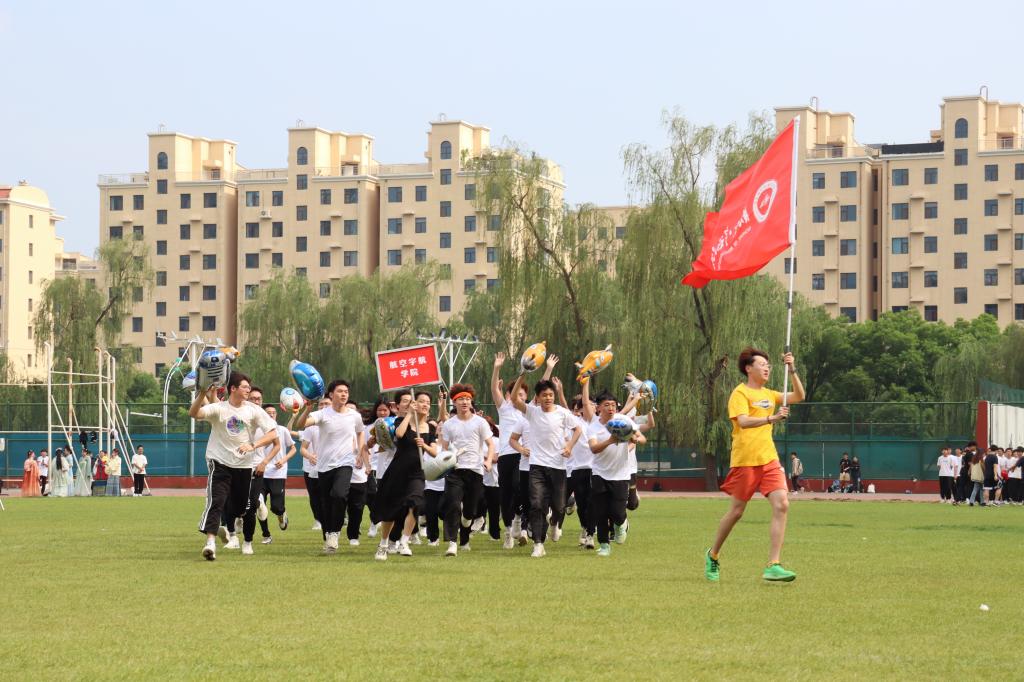 方阵的同学们身穿白色衬衫,手上拿着火箭气球,活力四射,在进场时,更有飞机模型冲上蓝天,彩带飘扬,为学院增光添彩,展示蔚蓝档案