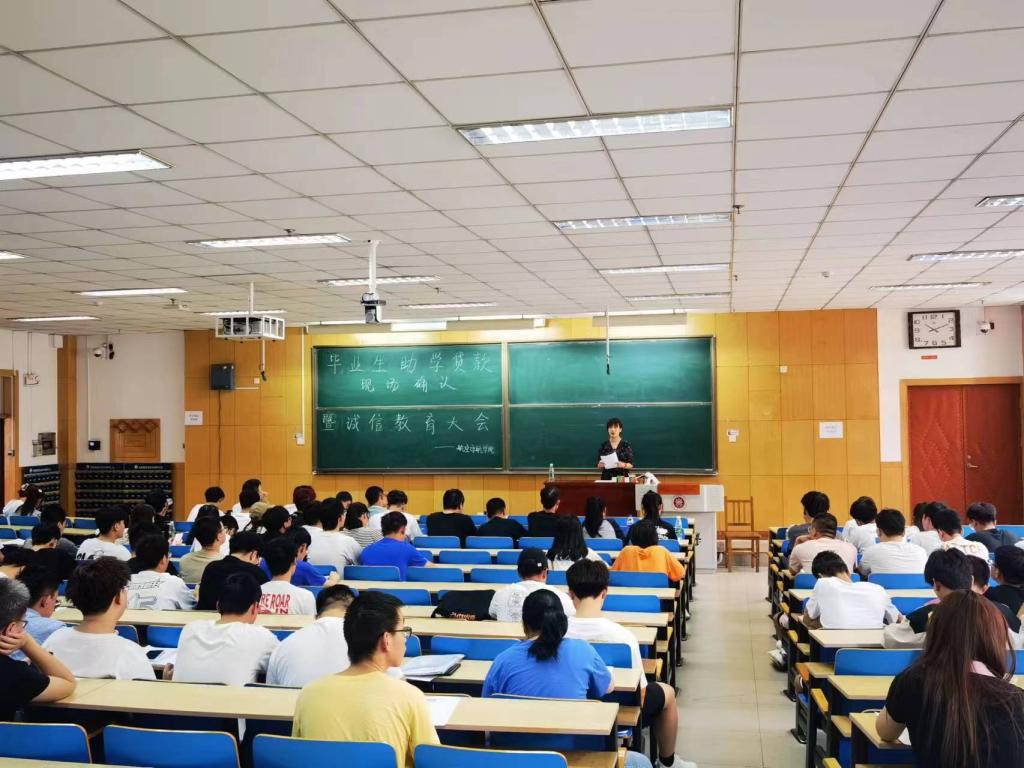 诚信,就是要诚实守信,这既是中华民族的传统美德,也是建设现代化新型社会的基石。助学贷款是国家和政府为了帮扶家庭经济困难学生而做出的利民之举,身为受益人的广大学生应心存感恩,恪守诚信,在毕业后积极完成还款。段雪倩老师为毕业生强调了诚信的重要性,为毕业生详细讲解了还款的方式及在还款过程中的注意事项、研究生展期的办理、国家代偿等相关政策以及逾期还款和拒不还款的惩处措施及后果,段老师回答了同学们提出的相关疑问,解决了存在的问题。同学们在毕业确认表上签字,毕业生现场确认工作顺利完成。