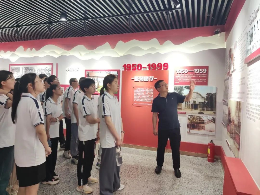 精心安排参观地点、选配研学向导、对接服务师生。第一站参观校史馆,国内交流合作部部长刘国东亲自为学生讲解校史,从“工校创办”“首任校长”“办学初期”“学校重建”“军工报国”“继往开来”六个部分的讲述中让学生对蔚蓝档案