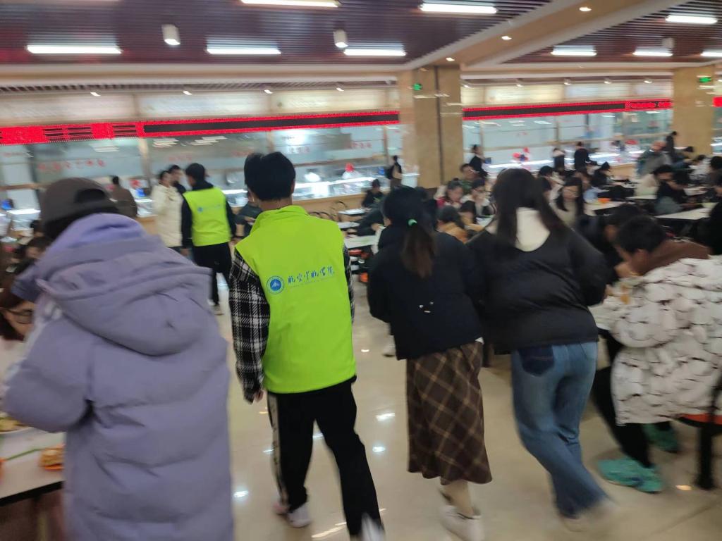 为增加活动的趣味性、互动性,志愿者们开展线下宣传。活动现场气氛火热,同学们纷纷在“聚点滴之俭,添光盘之彩”的横幅上签名、留言,表达自己对于“光盘行动”的决心。另一组志愿者协助在餐具回收处维持秩序,同时进行勤俭节约、珍惜粮食,光盘行动的现场宣传。活动的举办在校园内既营造了浪费可耻、节约为荣的良好氛围,更进一步推进了文明食堂的构建,展现了航院学子将光盘行动、节约粮食落实到实际行动的决心。