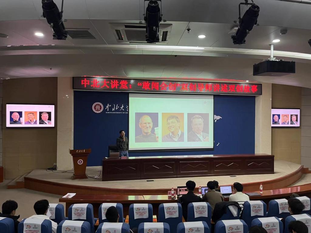 承办主题为“敢闯会创”——双创导师讲述双创故事的中北大讲堂。报告会邀请到清华大学“互联网+”大赛金奖俱乐部王大力、徐帅旗、叶小云、陈威廉老师与同学们交流他们的心得体会,为大家解答心中有关创新创业的疑惑。