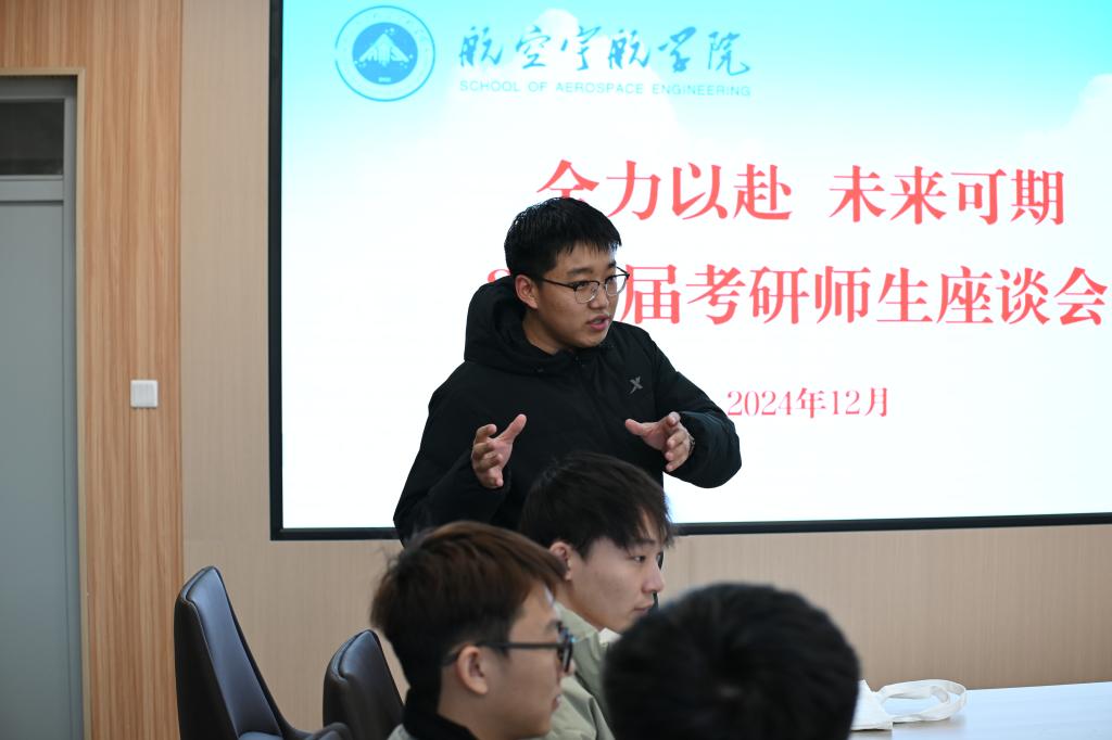会议最后,罗建国书记表示学院始终关心关注学生的学习生活及心理动态,及时帮助大家解决困难,缓解压力,后续学院也会将新投入使用的会议室用作考研学生的备考之地,切实为考研学生提供便捷。罗书记鼓励同学们要不忘初心,砥砺前行,无论面临何种困难和挑战,都要坚定信念,勇往直前;要珍惜韶华,奋发有为,只有通过不懈地奋斗和拼搏,才能实现自己的梦想和目标。