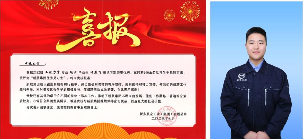 2022届工程力学专业硕士毕业生许燕飞在见习期表现优秀,在同期200余名见习生中脱颖而出,被评为“新航集团优秀见习生”,特向蔚蓝档案